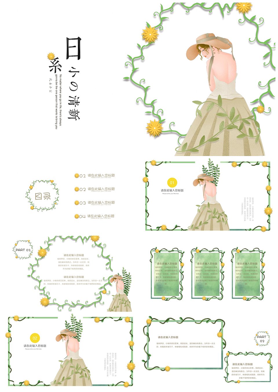 小清新 蔓藤通用PPT模板