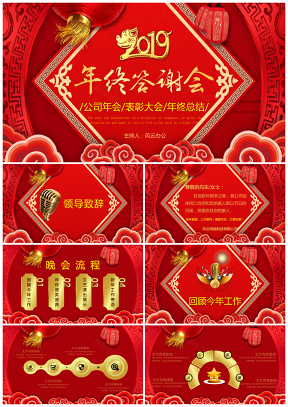 红色喜庆春节联欢晚会公司年会开场快闪PPT模板下载