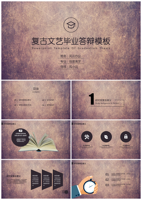 复古文艺毕业答辩艺术生文艺毕业论文答辩模板下载