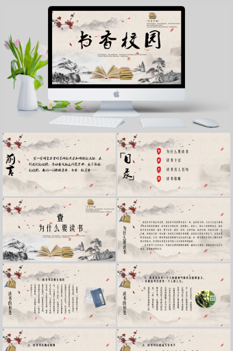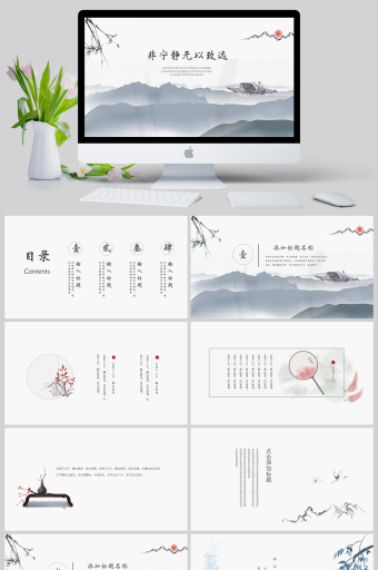清新水墨色中国风通用教育培训课件PPT模板下载下载
