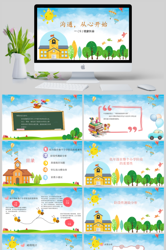 卡通童真教师课件公开课亲子活动家长会PPT英文模板下载
