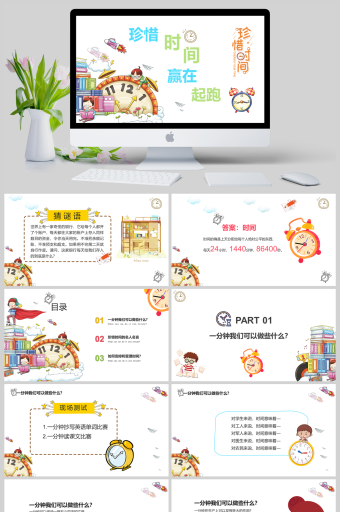 简约清新卡通课件珍惜时间小学初中主题班会家长会PPT模版下载