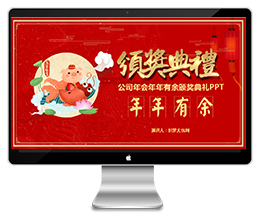 红色喜庆2019猪年公司年会年年有余颁奖典礼PPT免费下载