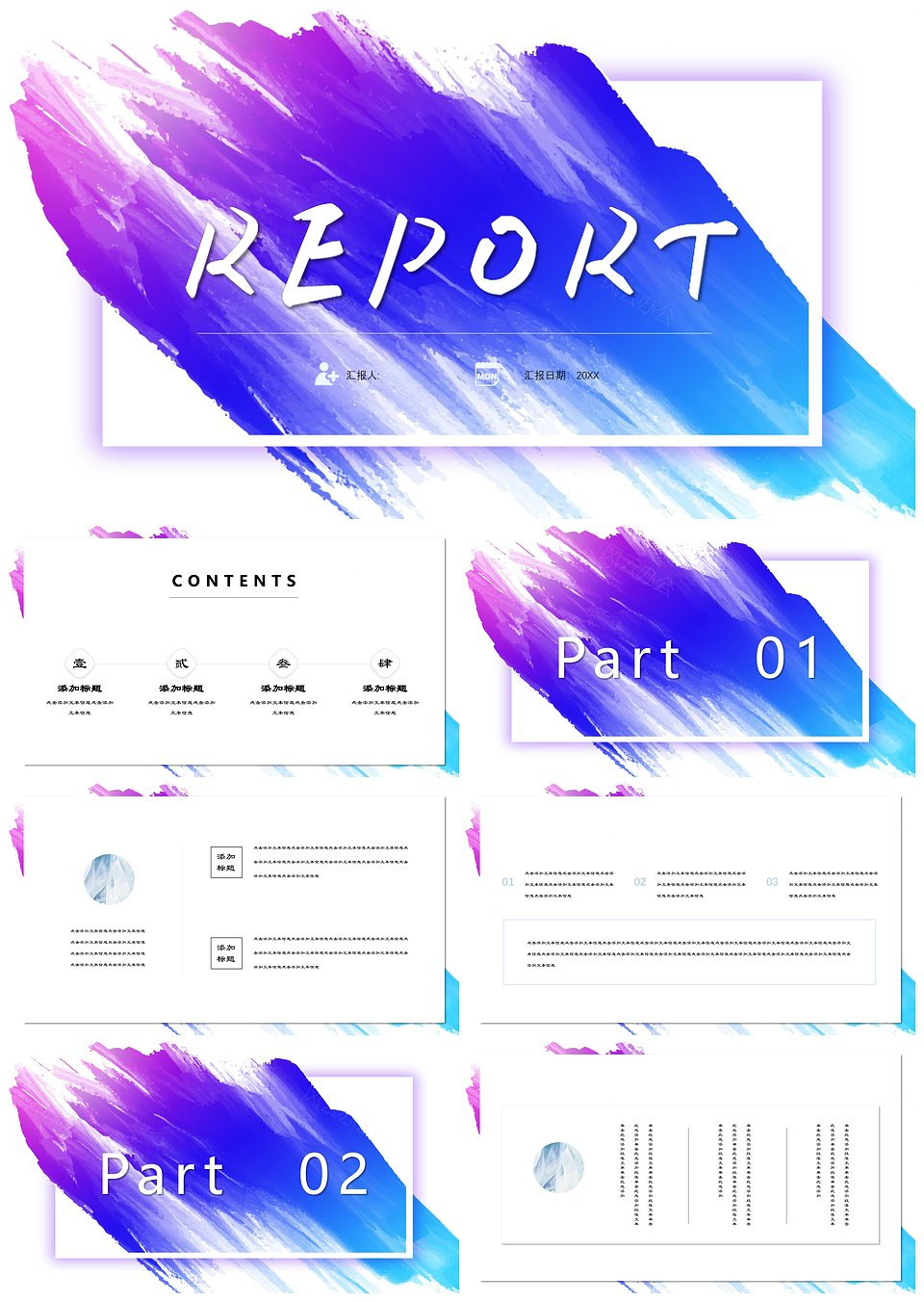 水彩印象唯美小清新简约毕业答辩PPT模板