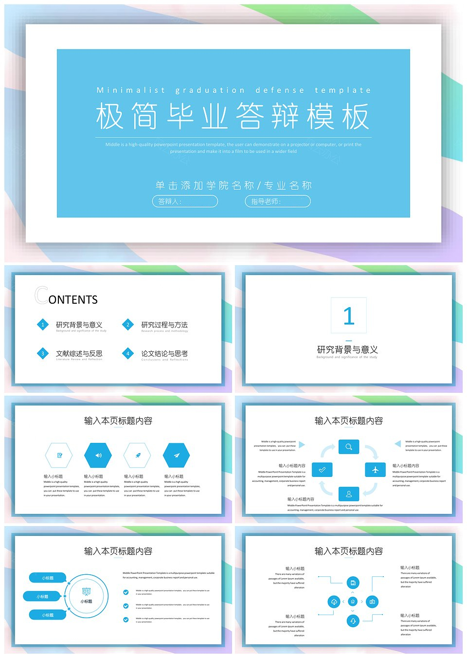 毕业论文答辩简约气质小清新最爱PPT模板(框架完整)