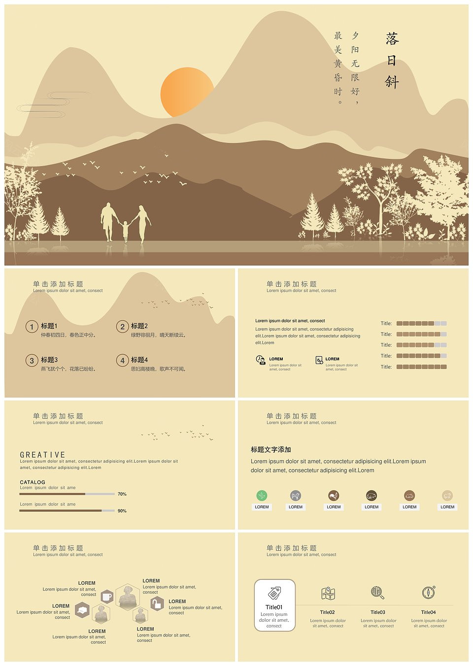 复古淡雅小清新唯美落日斜PPT模板