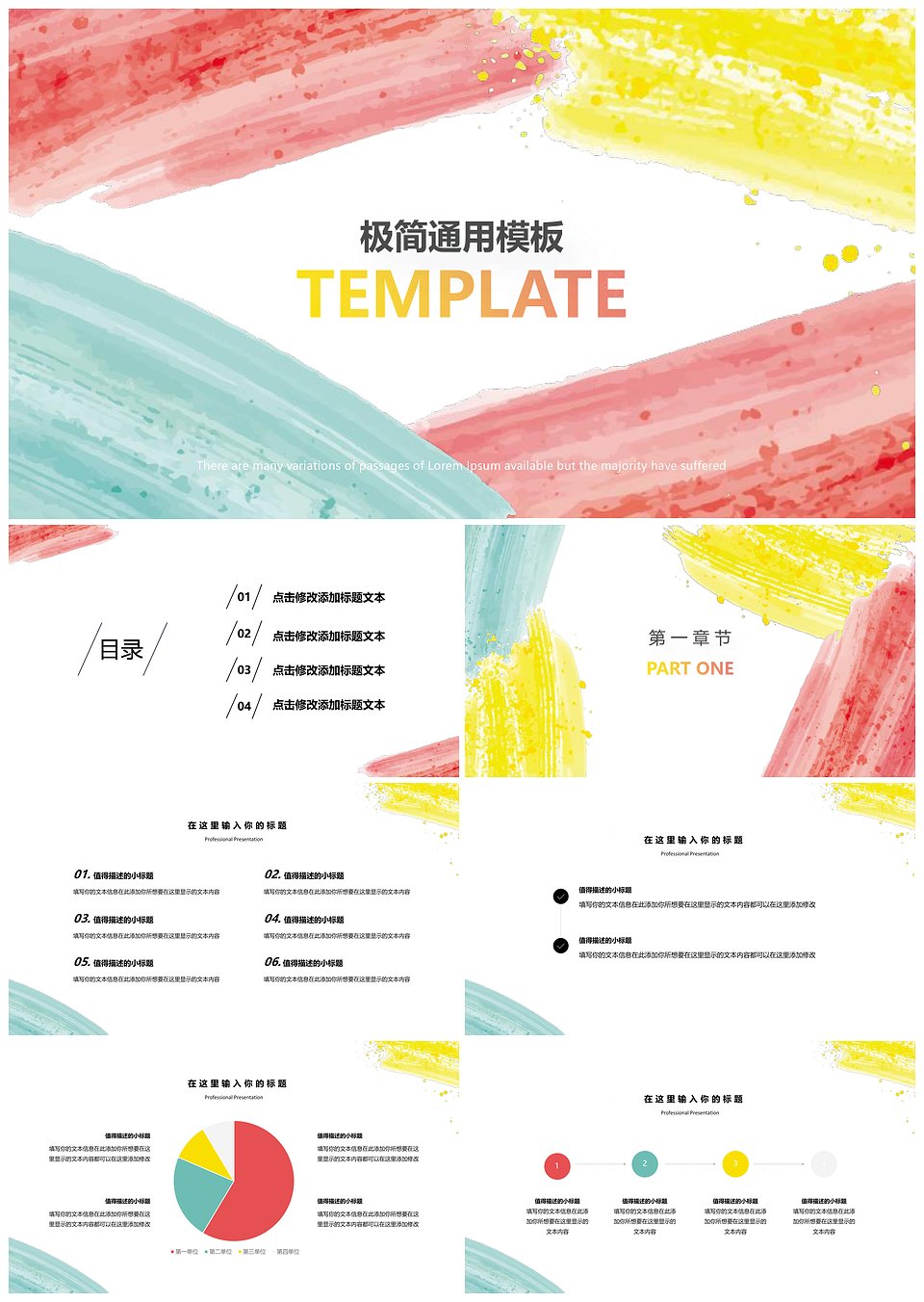 水彩墨迹风格通用PPT模板