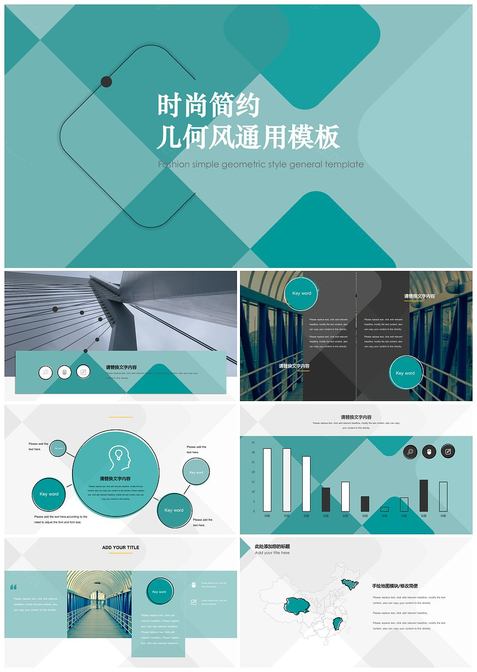 时尚简约几何风工作汇报通用PPT模板