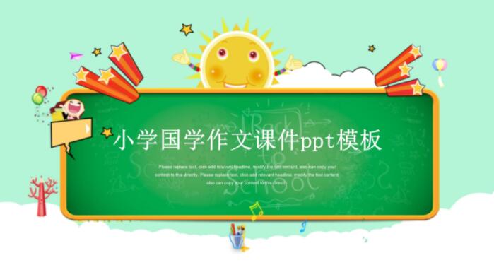 今天为大家介绍一款小学国学作文课件ppt模板,有需要的可以来看看。 这是一款简洁时尚的小学国学作文课件ppt模板,适用于教育类ppt模板制作。...