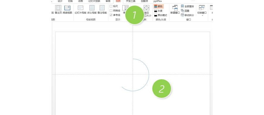 虽然PPT没有明确的角度设置参数,但利用参考线和旋转功能也能设定弧形的精确度数。如何在PPT中实现弧形精确角度设置?一起随小编来看下吧 就 首先打开PPT的默认参考线 (下图1处)。然后绘制一个 弧度图形放置于参考线中心位置 。(下图2处) 将弧度角度调整成下...