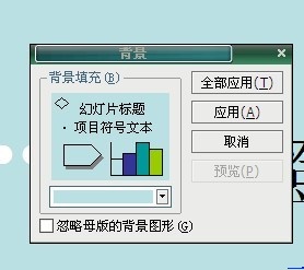 在幻灯片上鼠标点击右键,选择背景,里面下拉菜单里有填充颜色以及填充效果,填充效果里面你自己看一下就知道了,里面可以用图片的。...
