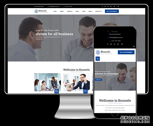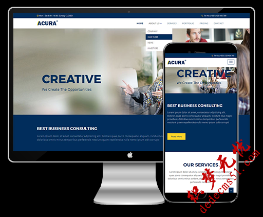 蓝色响应式的商业咨询服务公司英文网站模板下载