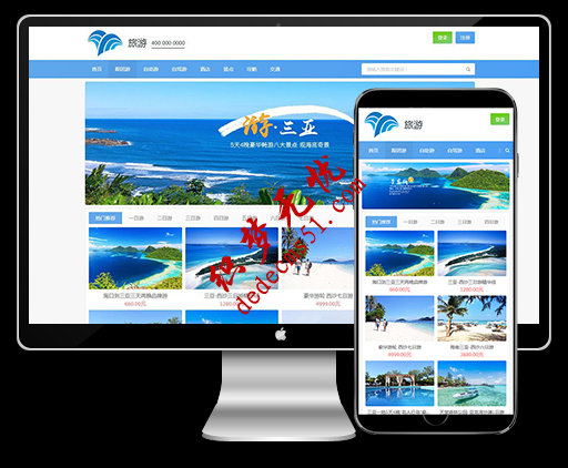 蓝色在线旅行服务公司网站响应式网页模板下载