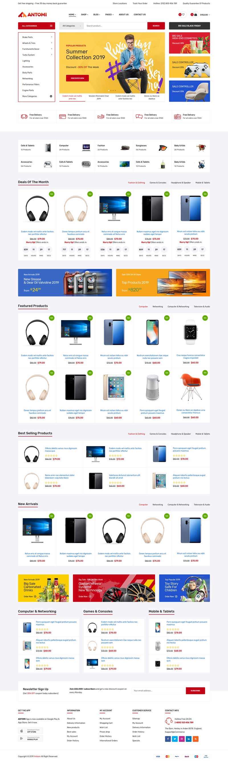 红色的电子产品电商网页模板