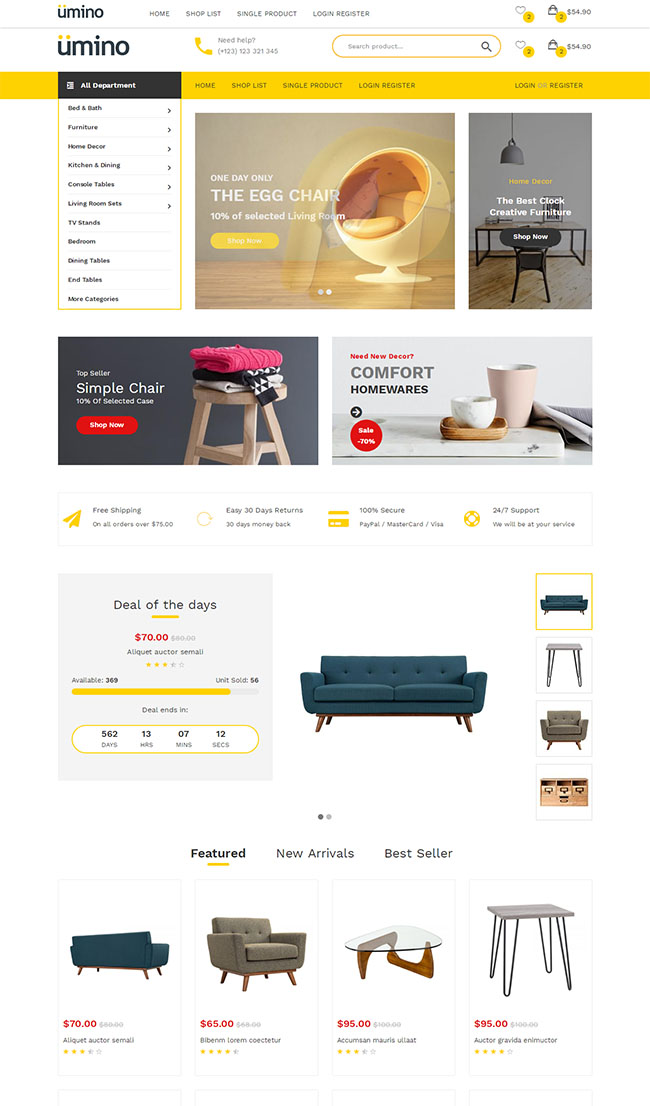 黄色室内家具电商商城模板