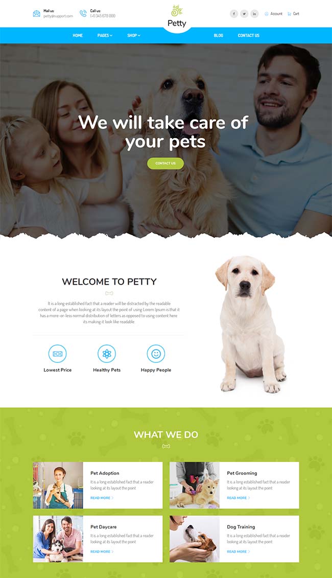 大气扁平宠物商店网站模板