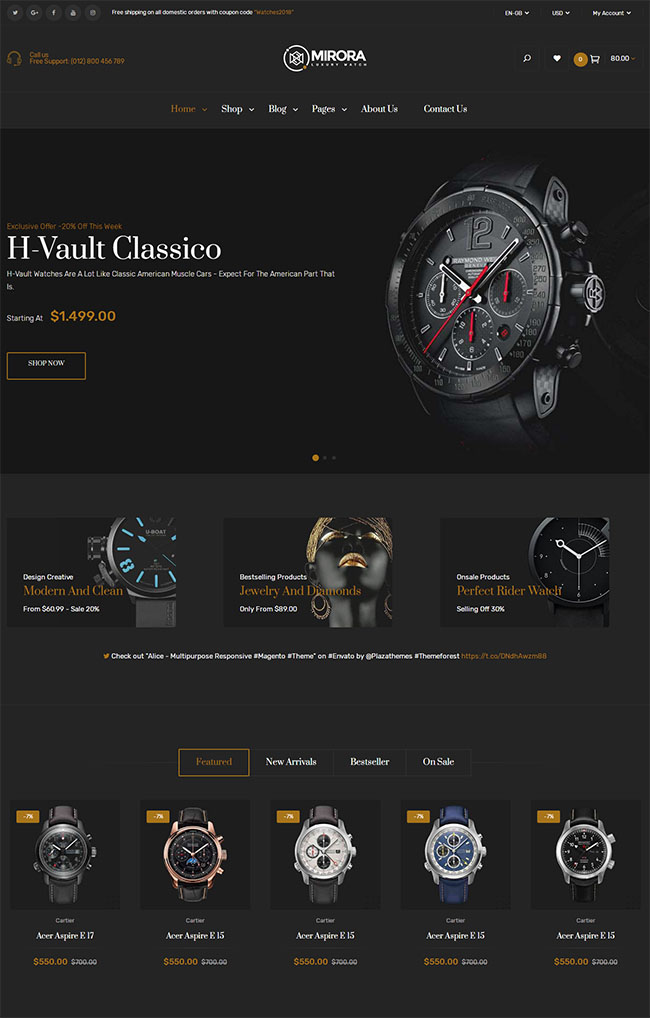 奢侈品手表商城网站模板