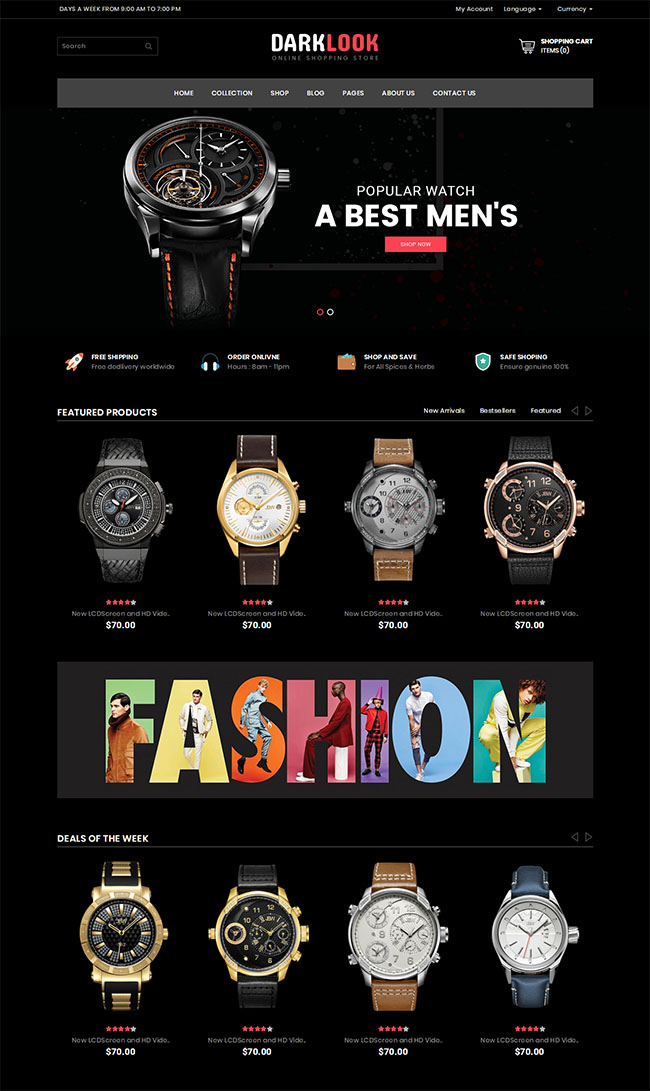 黑色手表在线商城网站模板