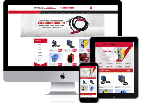 (带手机)焊接机械设备网站红色大气织梦模板下载