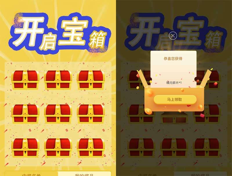 手机端开宝箱抽奖H5模板