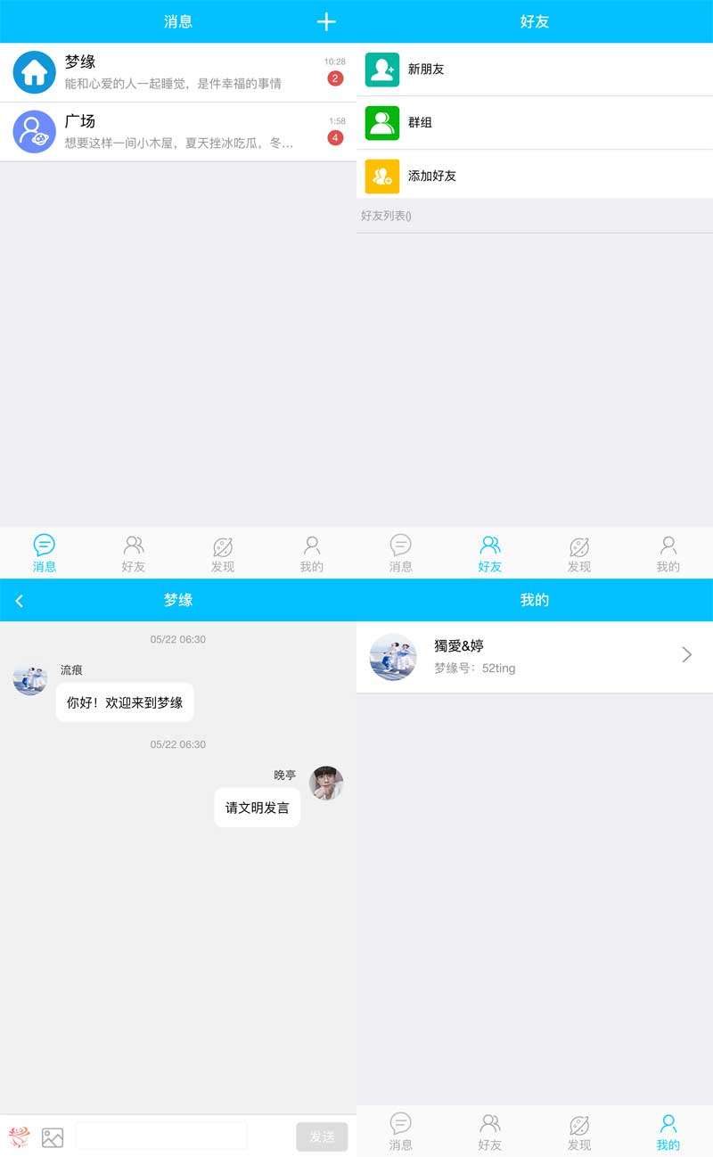 仿QQ轻应用聊天app手机模板