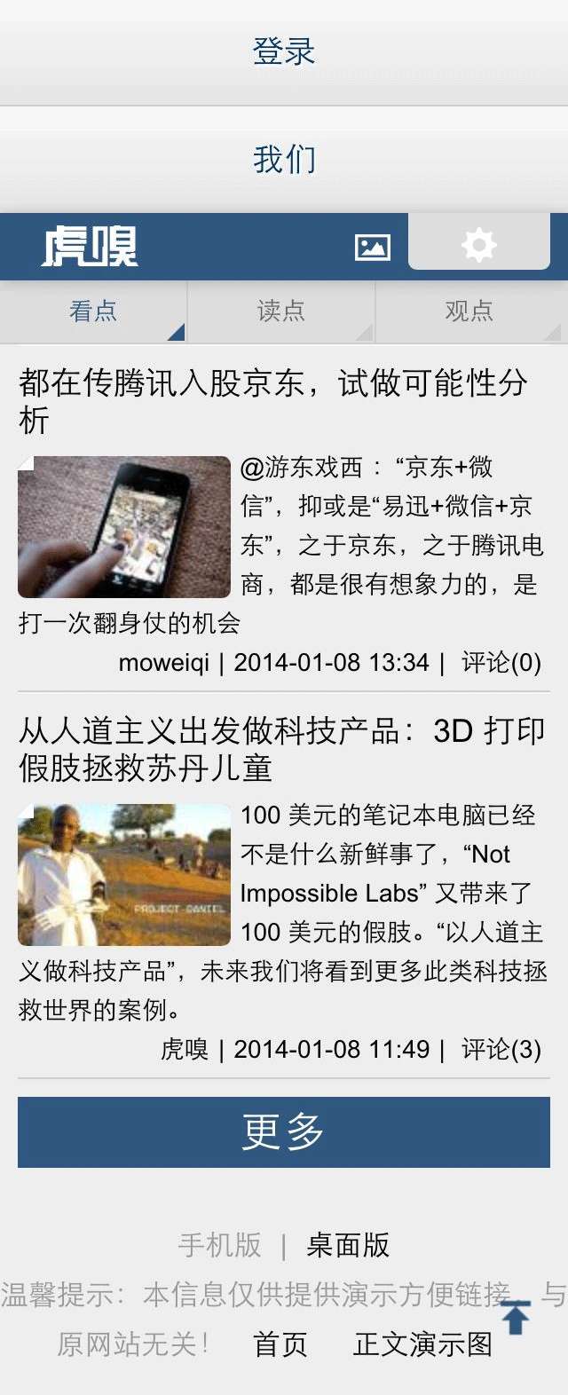 手机端网页制作虎嗅网wap新闻手机网站模板下载