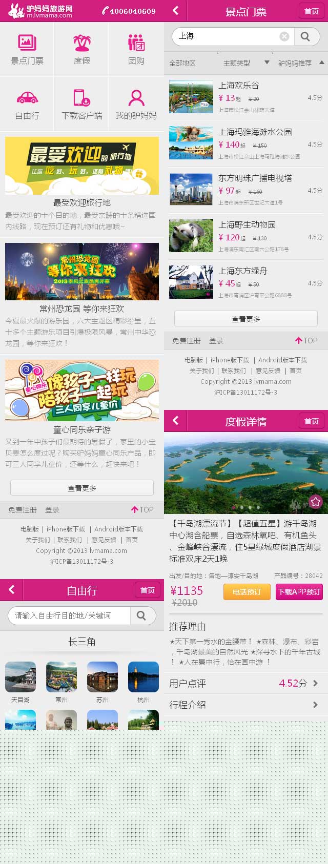 粉色的手机网页驴妈妈旅游网wap模板源码