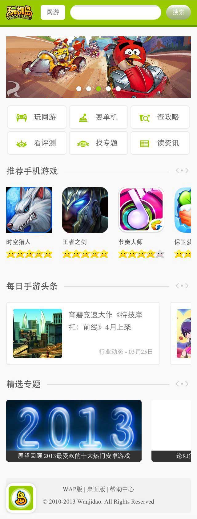 绿色的wap手机游戏资讯网页模板下载