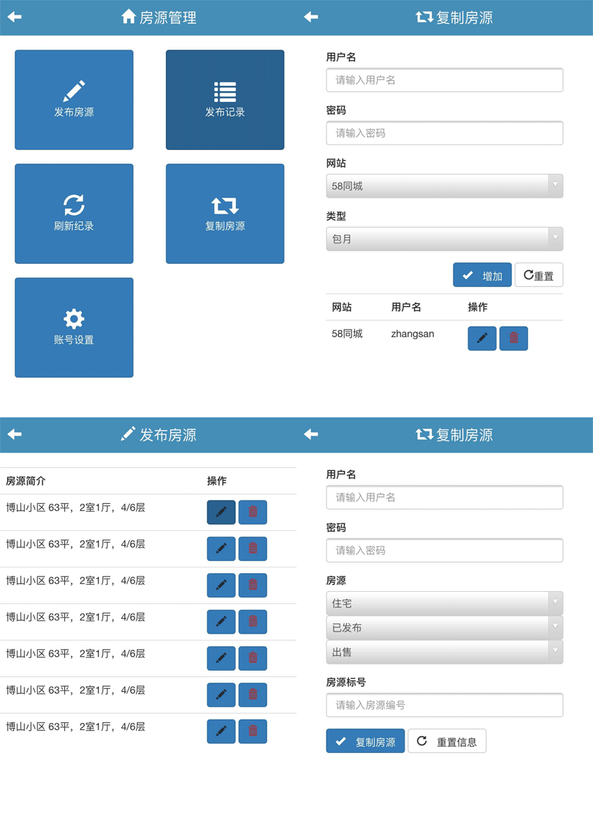 蓝色的手机版房源信息发布系统wap模板