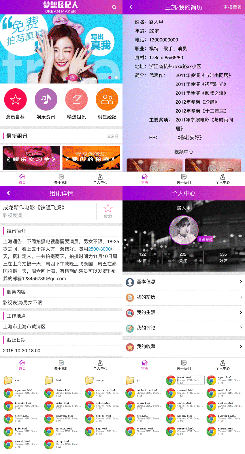 粉色的梦想经纪人手机app网页模板