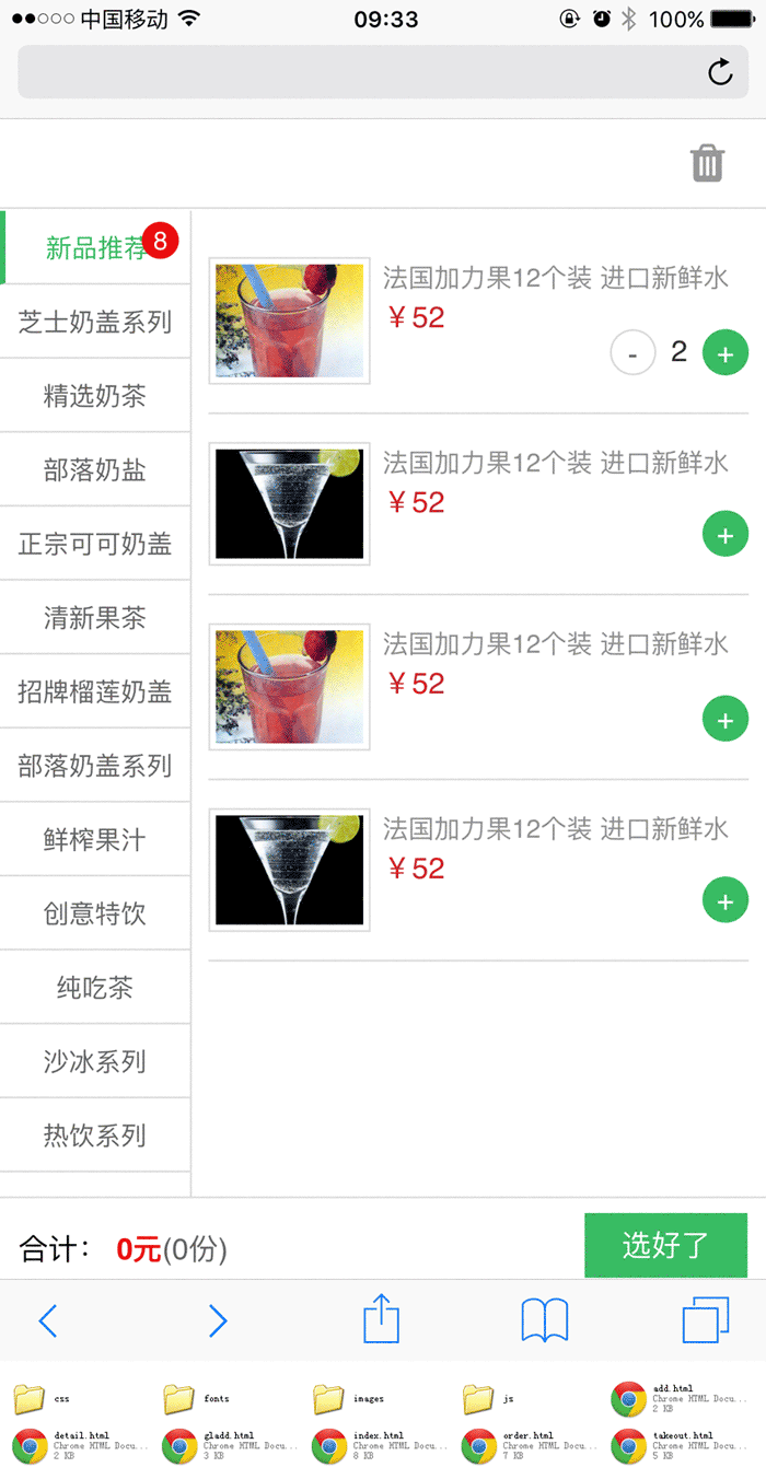 简单的手机微信商城点餐页面wap模板