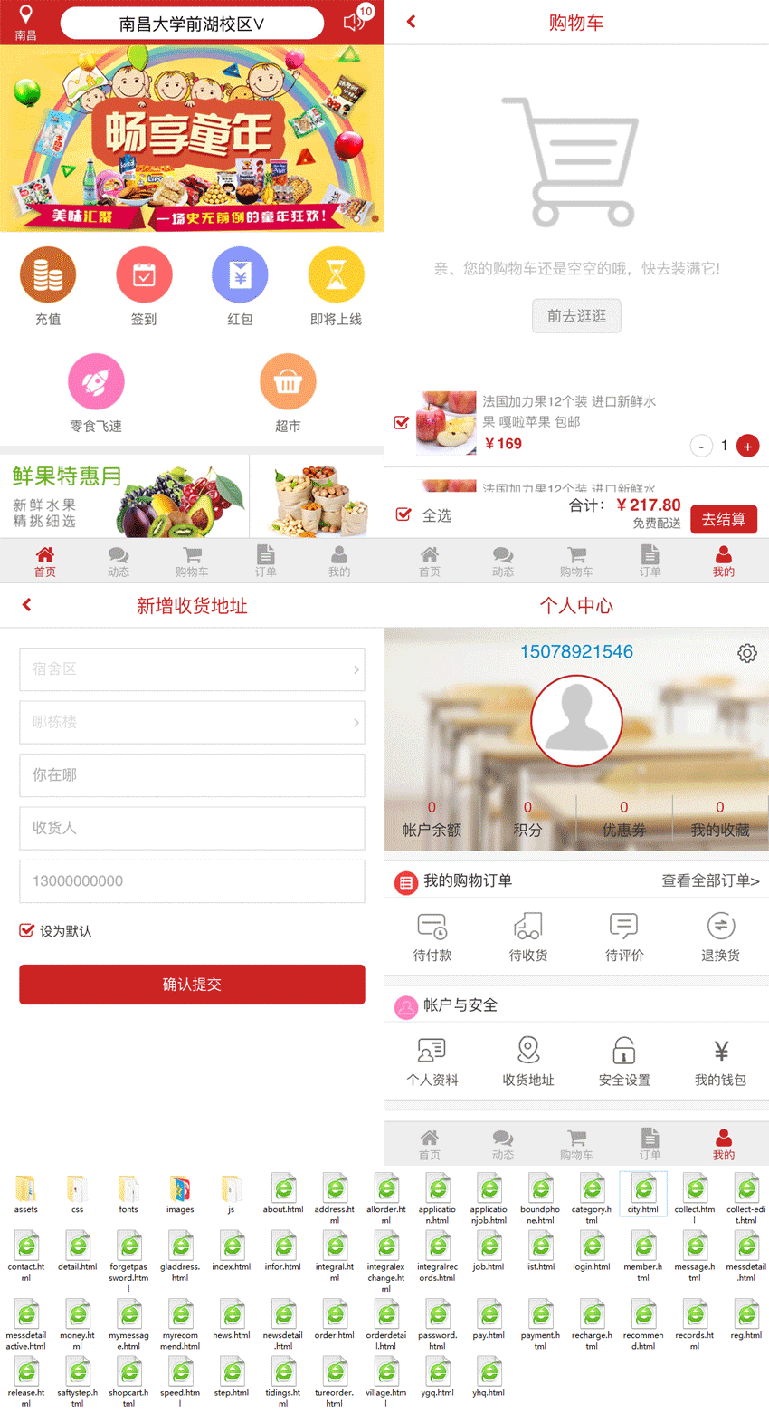 红色的超市购物商城手机app网站模板
