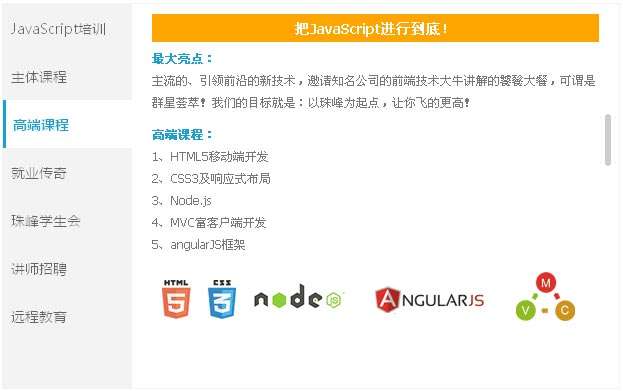 原生js Tab选项卡标签滑动带滚动条的内容滚动切换显示代码