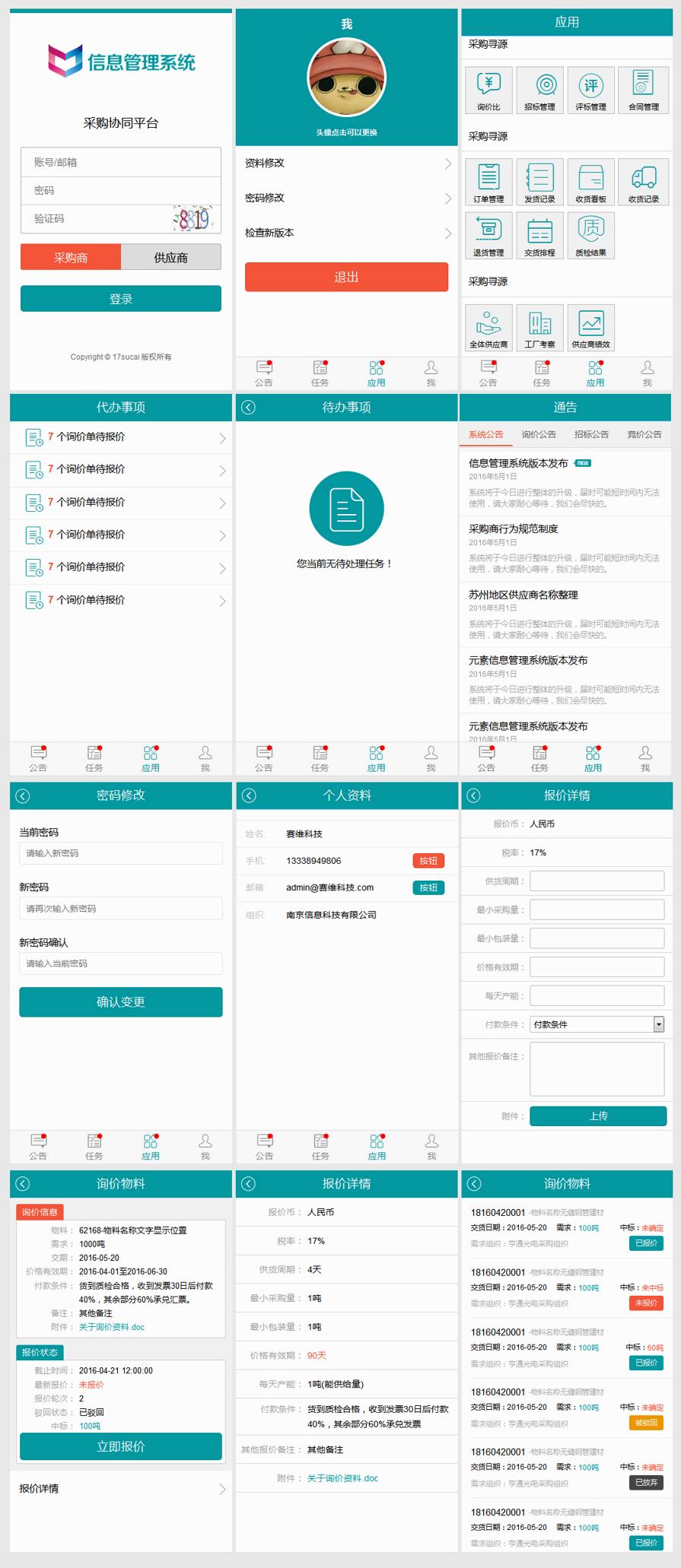 蓝色的采购信息管理系统手机界面wap模板