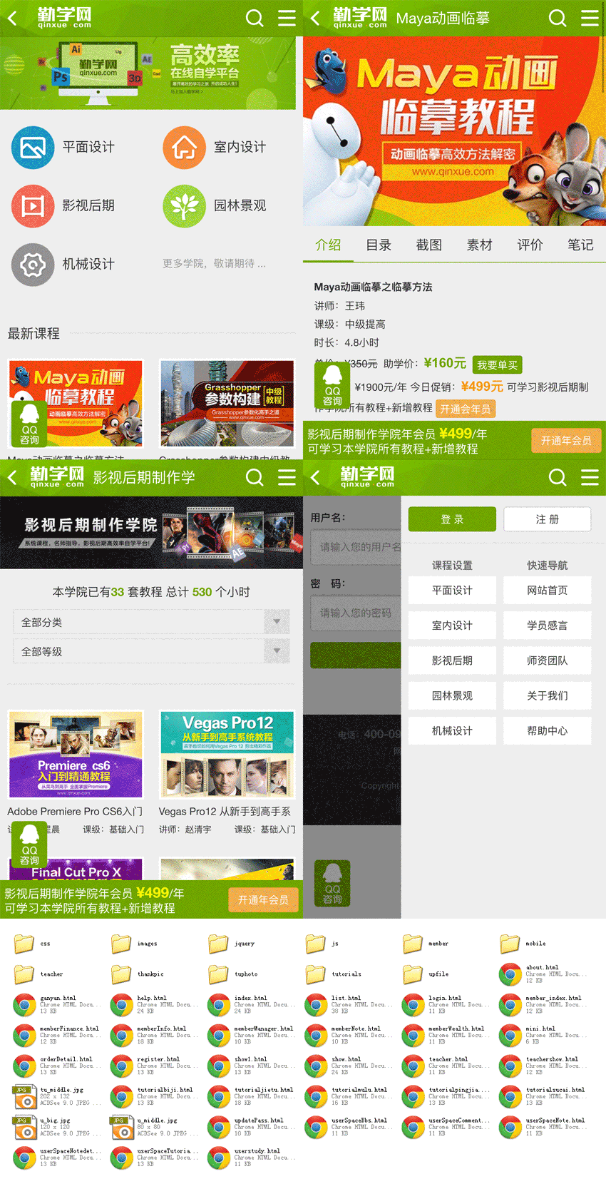 绿色的勤学网教育培训wap手机模板下载
