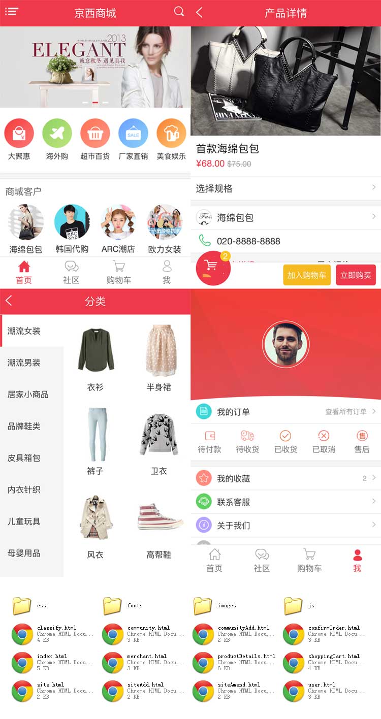 红色的移动端商城社区wap模板源码