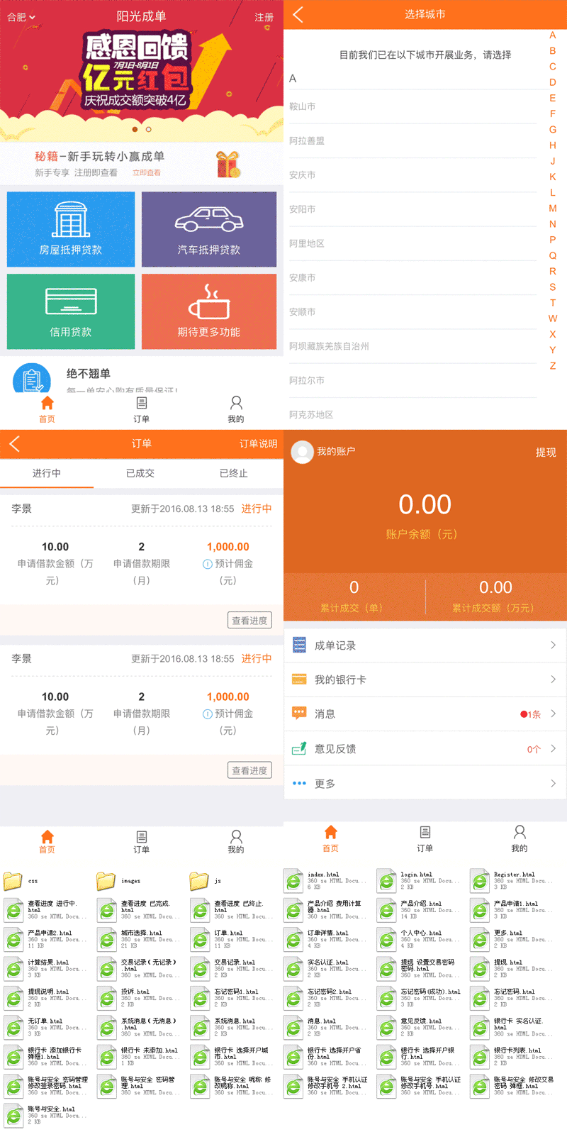 橙色的业务员贷款服务手机APP界面模板