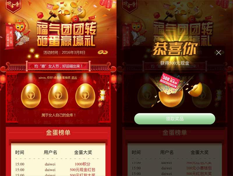 红色喜庆的砸金蛋手机抽奖页面模板下载