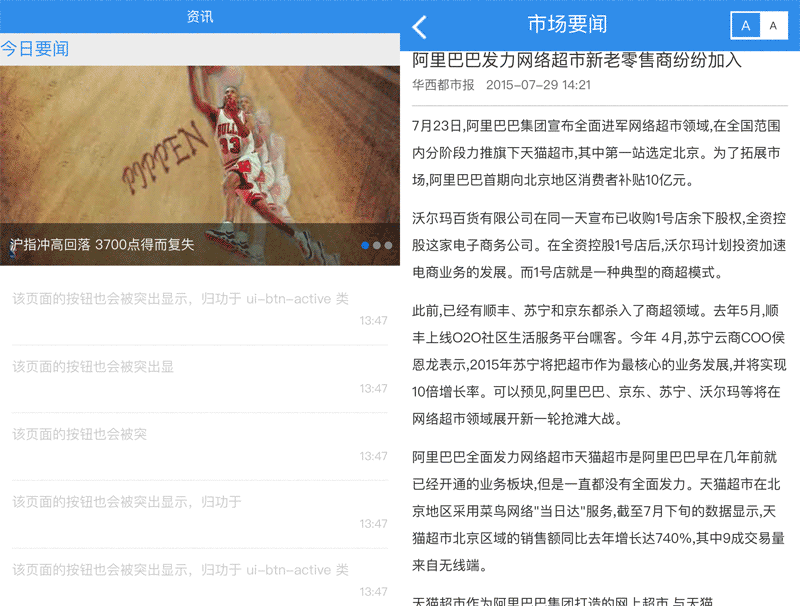蓝色简单的新闻资讯页面手机模板