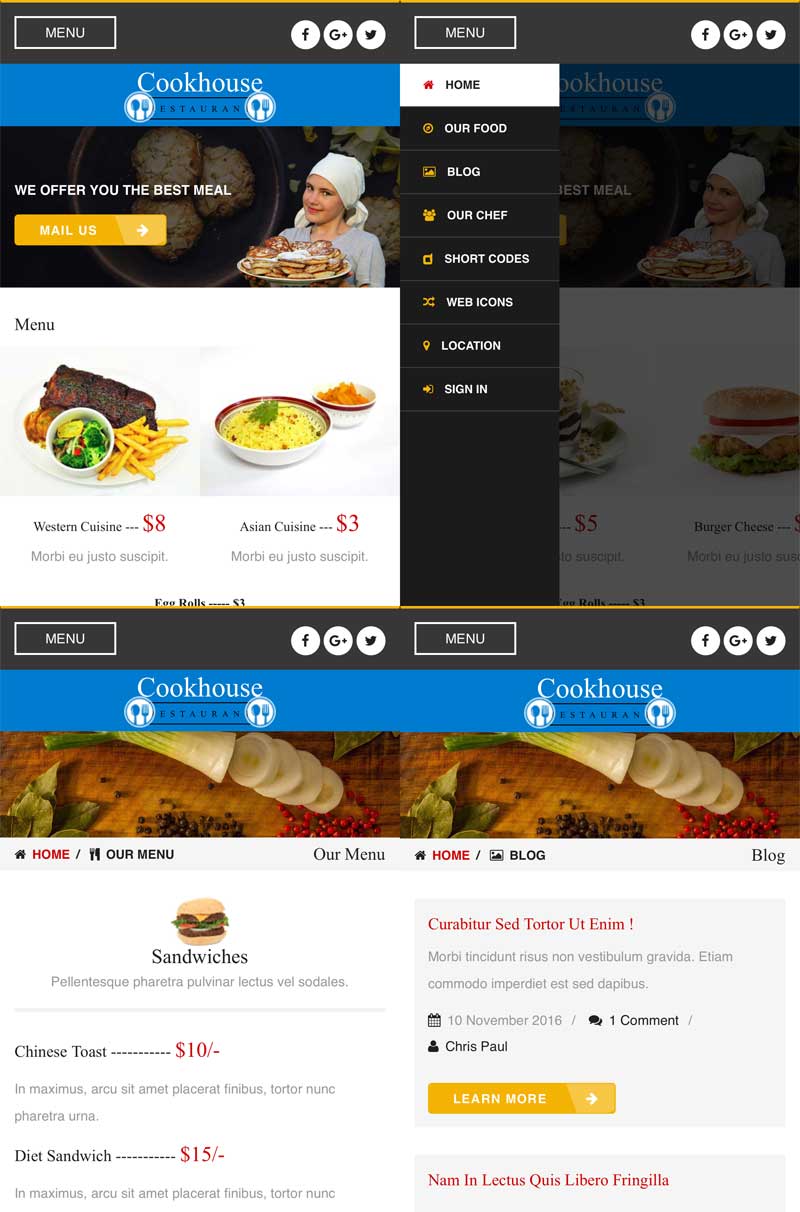 黑色的国外餐饮美食手机响应式模板