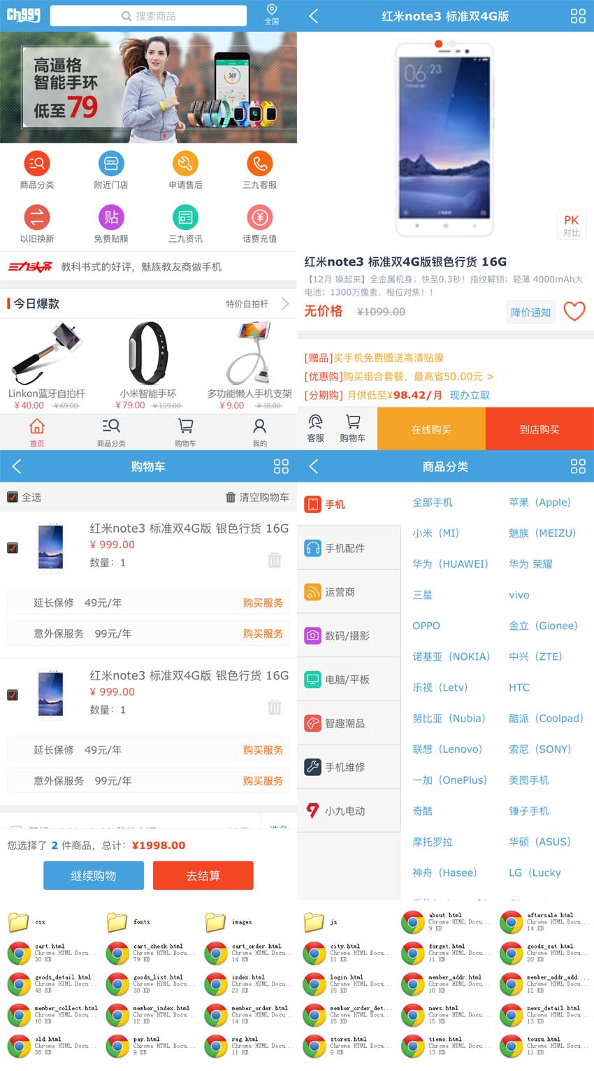蓝色三九手机数码产品购物商城wap模板