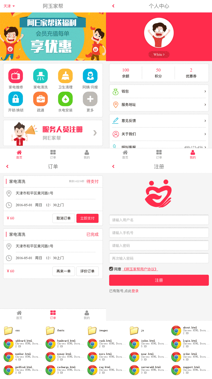 红色的家政服务手机网站模板源码