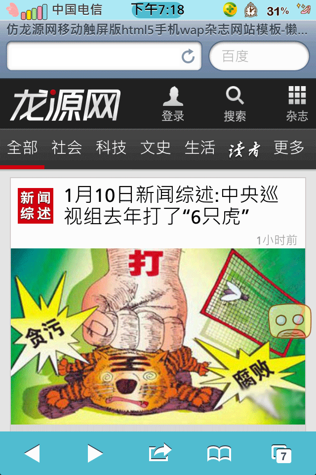 仿龙源网移动触屏版html5手机wap杂志网站模板源码下载