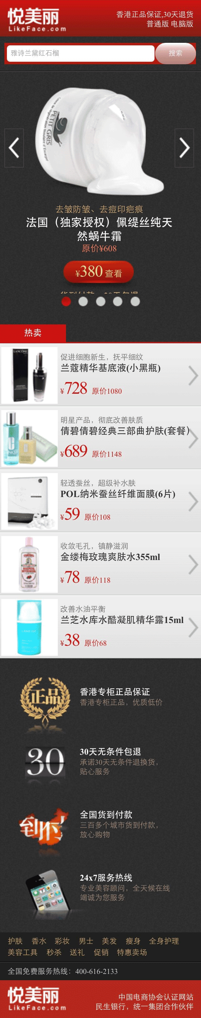 红色的触屏版wap手机购物网站模板下载