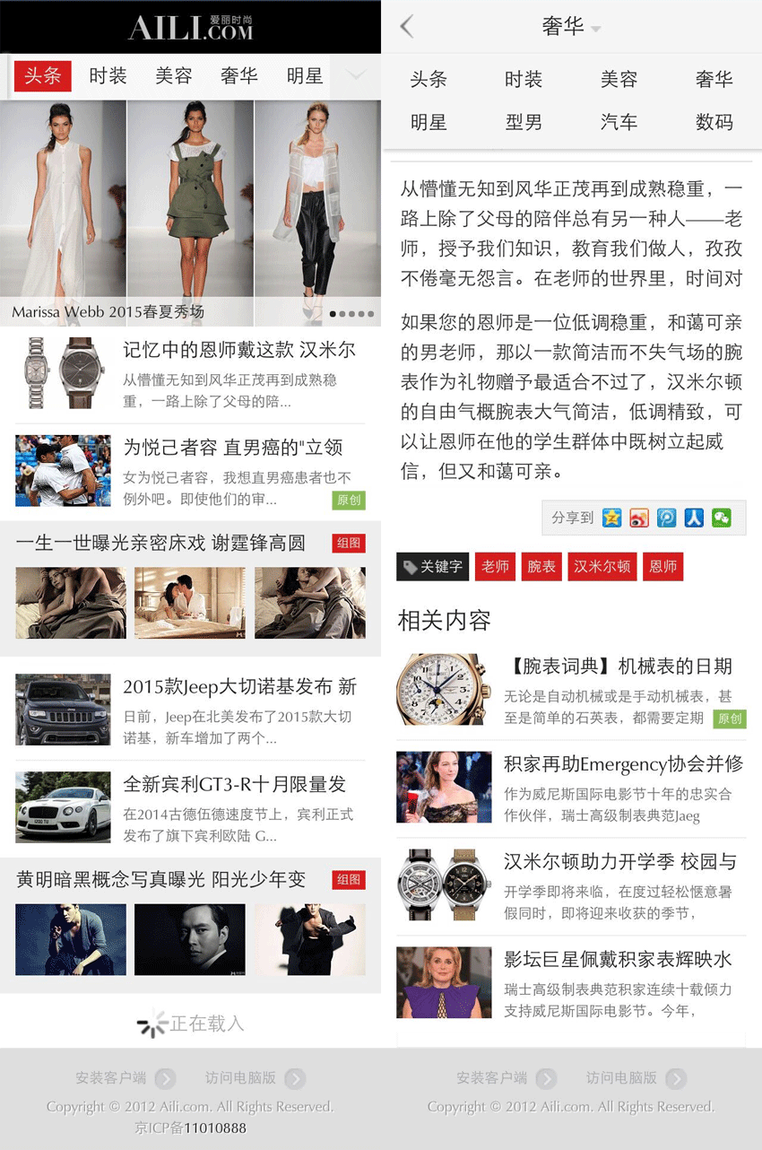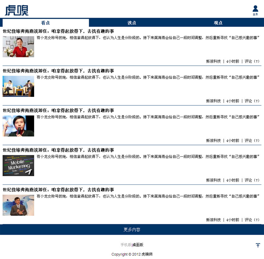 div css制作wap手机版网页虎嗅新闻手机网页模板html下载