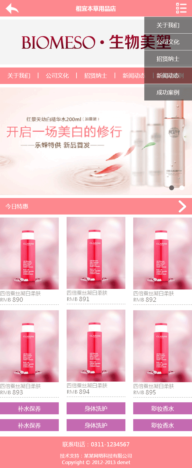 粉色的化妆品展示企业手机网站模板html全站下载(兼容pc端和手机