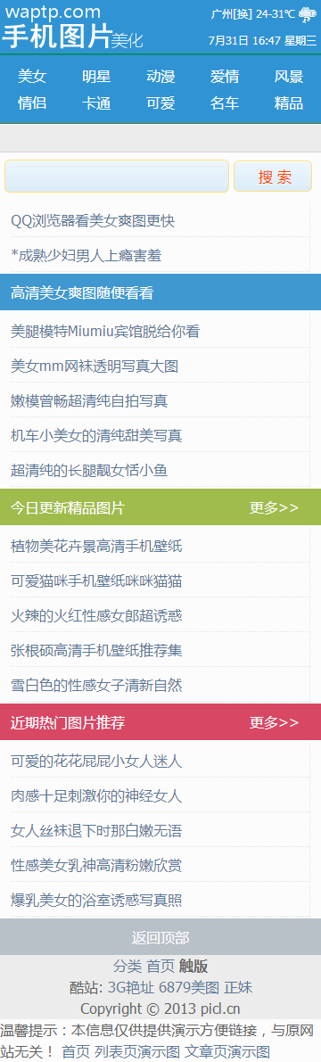 简洁的图片站资讯手机网站wap模板源码下载