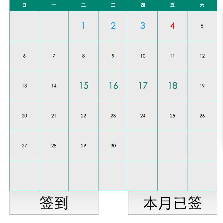 jquery简单的日历每日签到功能代码