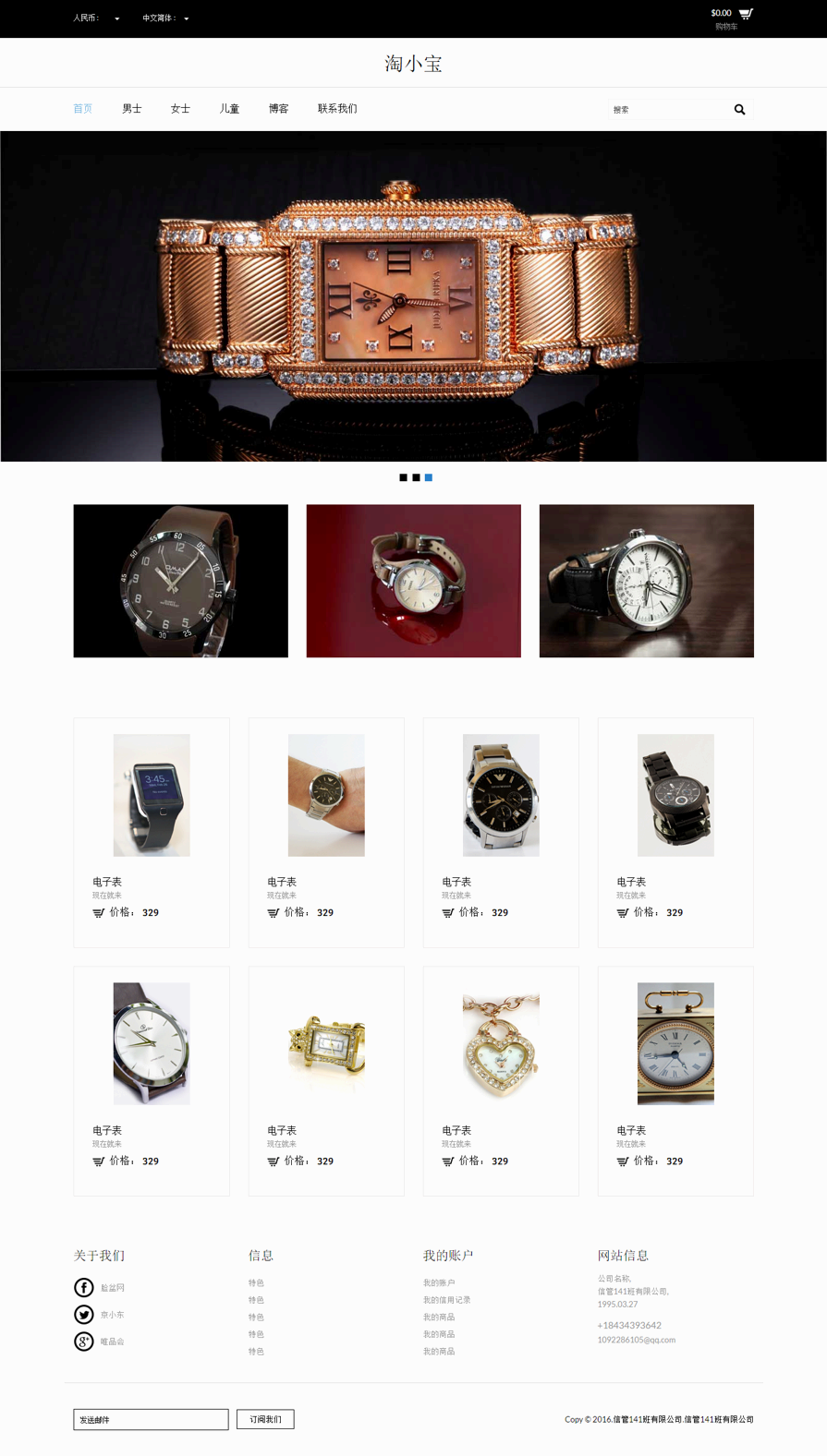 仿外国的手表网站模板,黑色、简洁、手表购物网站html...