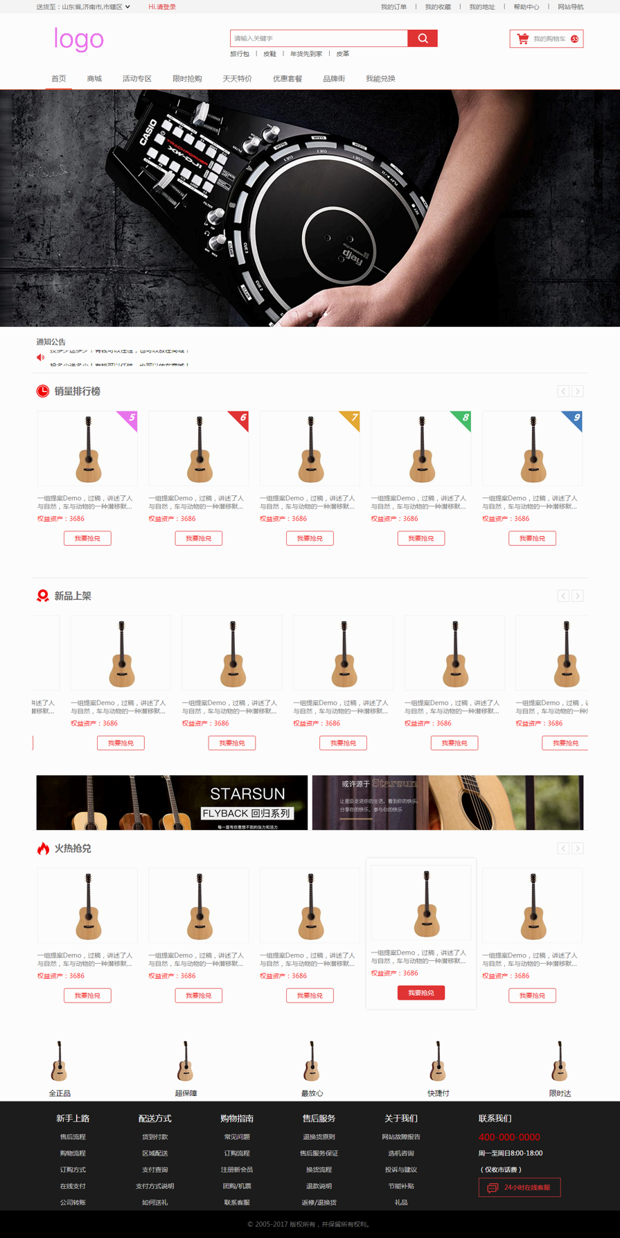 这里是网站商城的首页的静态页面模板下载,简洁的乐器商城模板html下载演示地址:http://www.dede58.com/...